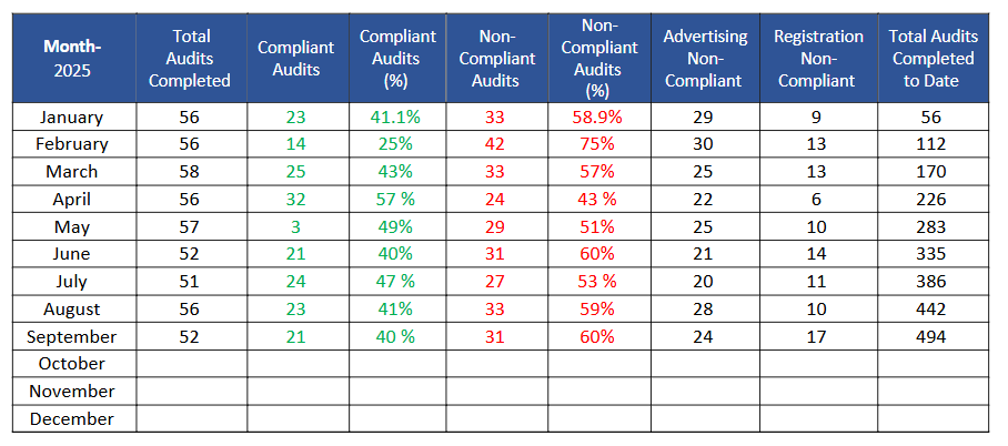 The BCMB has enhanced its focus on retail compliance with the retail inspection program. Audits of retail locations are conducted across Alberta by third-party auditors – One Stop Shoppers Ltd.